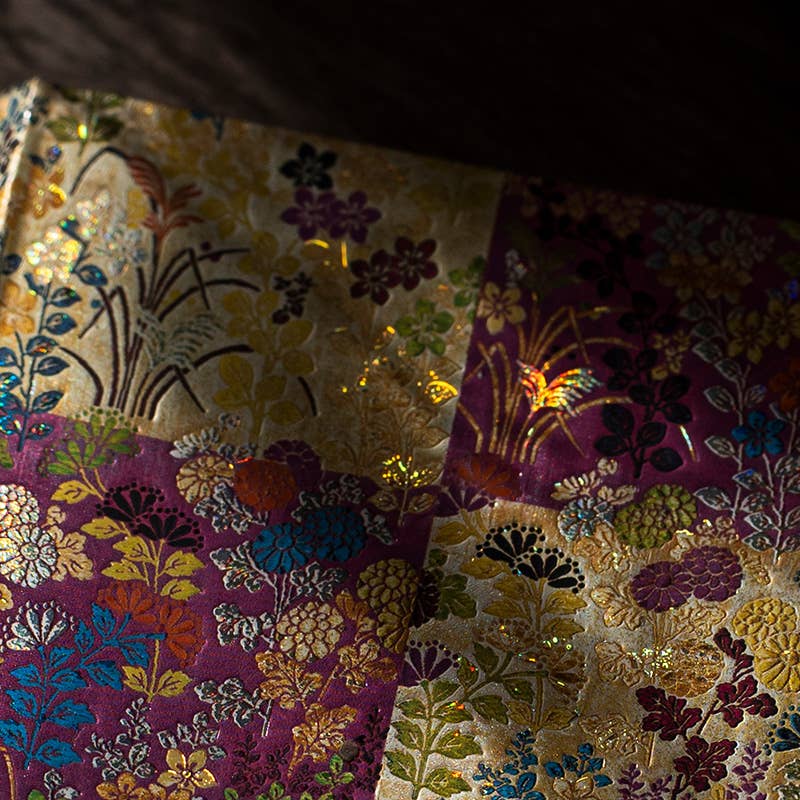 Showcasing silk dyed with beni and safflower, and lacquered in gold, this kimono design dates to the Edo period (1615–1868), when it was used as a costume for the theatrical style known as Noh. Karaori refers specifically to the exquisitely embroidered traditional woman's kimono that Noh theatre was known for.