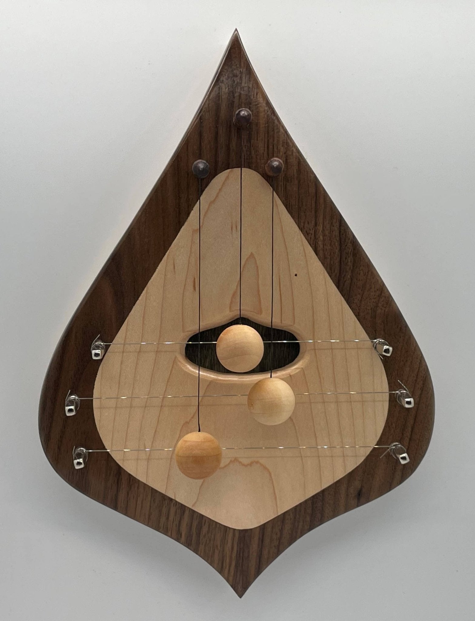 3 string door harp with Walnut border and simple Maple inlay. Door harp hangs on the interior of entry door and emits soothing sounds as door opens/closes. Door Harp- A Swedish musical instrument hung on the inside of the entry door is used to welcome guests into your home. As the door opens and closes, the door harp produces a soothing sound with its beautiful designs of inlayed natural hardwoods. You can tune the door harp to your liking by adjusting the piano pins with the enclosed tuning wrench, Careful not to overtighten wires! Hand made from natural hardwoods in Oregon, USA.