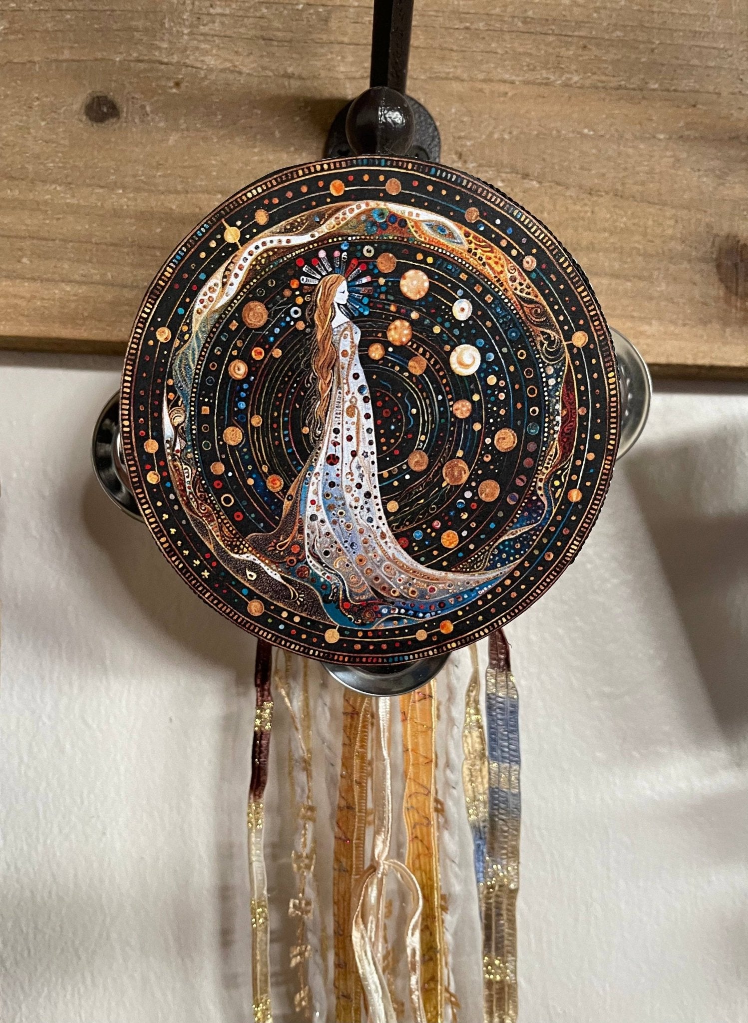Quality ribbon and charm complete this 4" diameter tambourine.