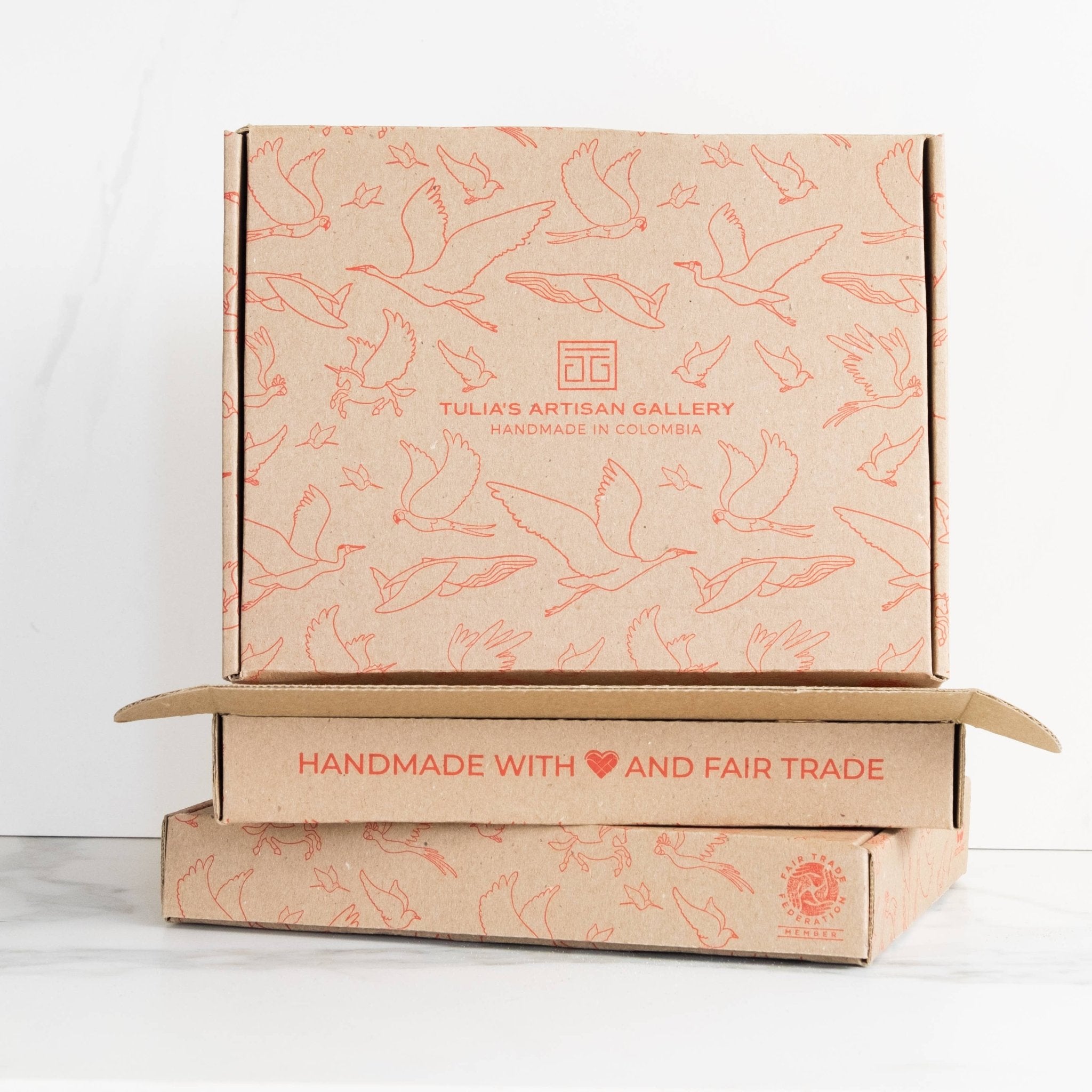 These whimsical flyers are handcrafted by a woman-owned business in Colombia and packaged in custom-printed mailer boxes by another woman-owned business in Chicago.