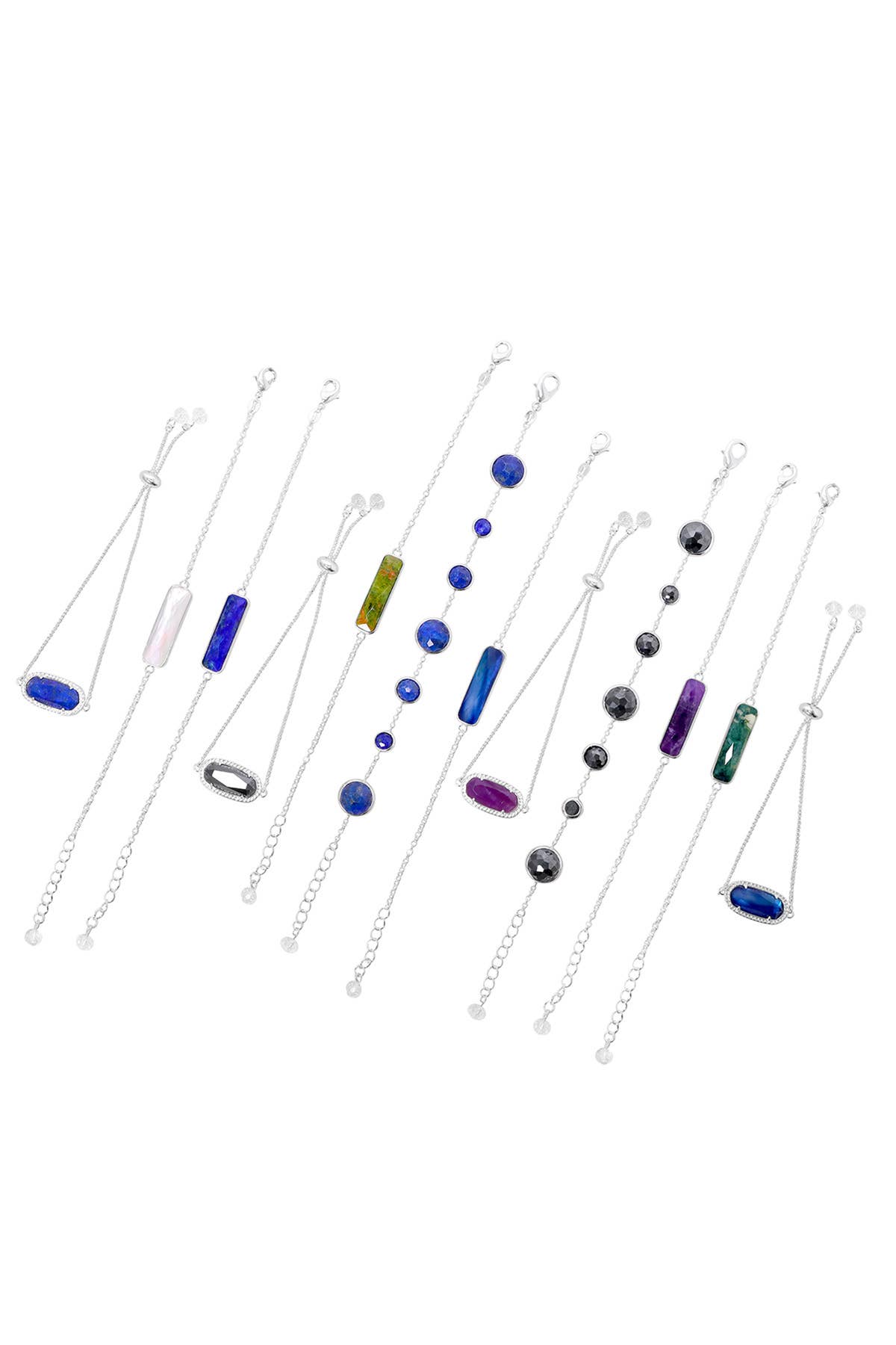 Semi-precious gemstone link bracelets. Material: Sterling Silver Filled. Size: 7" + 1". Assorted (12 pcs). Color mix: S1 (Amethyst, Lapis, Labradorite & Mother of Pearl Doublet, Hematite, Mother Of Pearl, Moss Agate, Unakite).