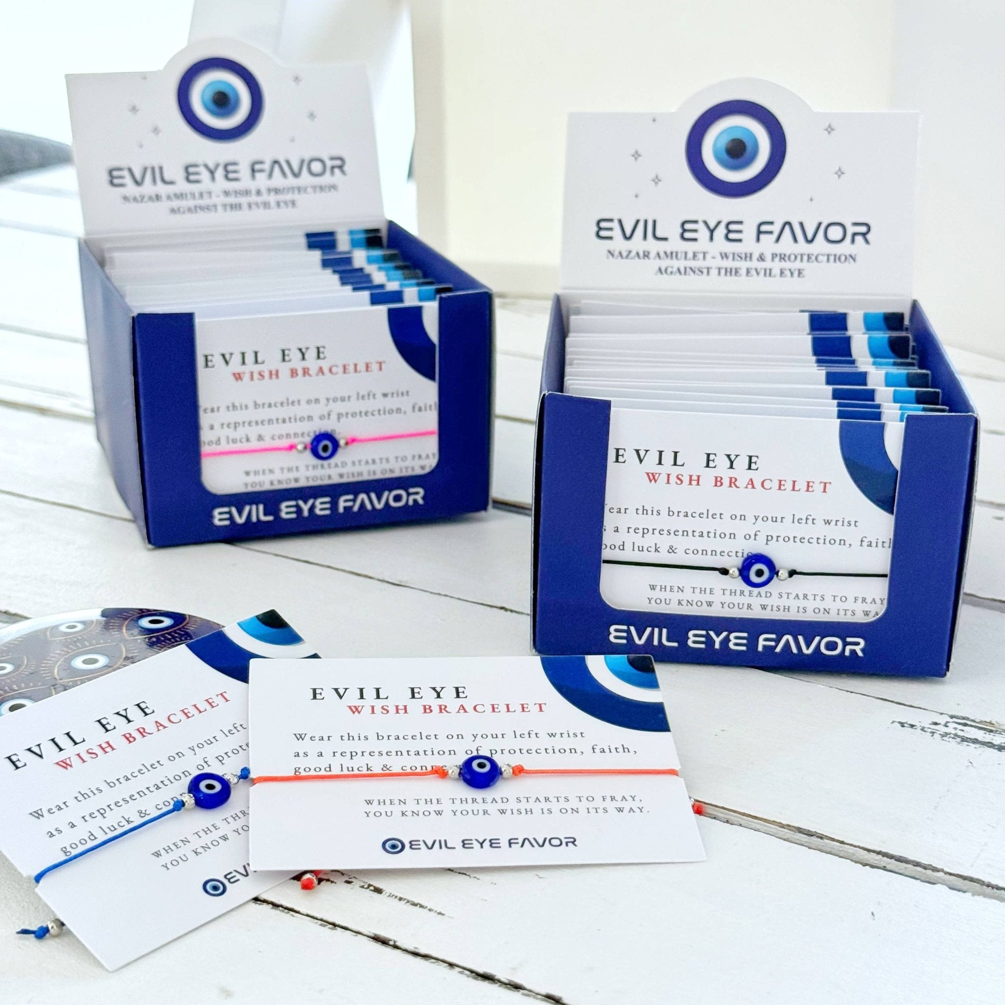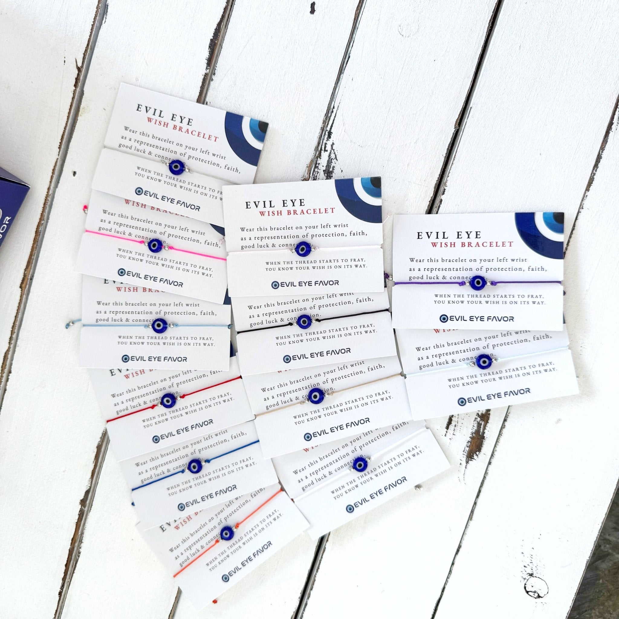 Elevate your boutique's jewelry offerings with this bestselling-style Evil Eye Wish Bracelet. A timeless symbol of protection and good luck, this adjustable bracelet is a high-margin, low-cost item that appeals to a wide audience seeking meaningful, affordable accessories. PRODUCT HIGHLIGHTS Proven Seller: Evil eye jewelry is a consistently trending and sought-after category. Universal Appeal: A unisex design that works for women, men, teens, and kids. Perfect Fit: Adjustable tie-on closure ensures a custom fit for every customer, eliminating sizing issues and returns. Strong Giftability: Ideal for impulse purchases, gift-with-purchase promotions, and as a popular party favor. High-Perceived Value: Beautifully crafted detail at an accessible wholesale price point.