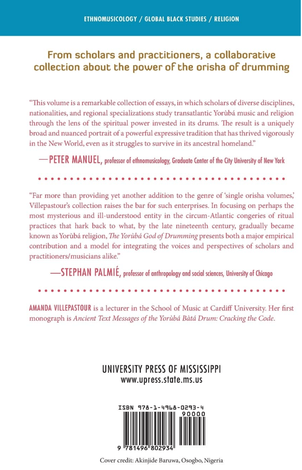 A pesar del creciente volumen de literatura sobre los orishas, sorprendentemente se ha publicado poco sobre el omnipresente espíritu musical Yorùbá. Sin embargo, dondequiera que se escuche el tamborileo de los orishas, Àyàn o Añá están cerca. Esta innovadora colección aborda la brecha en la investigación con contribuciones de una muestra representativa de prestigiosos músicos, eruditos y sacerdotes de Nigeria, América y Europa que se han dedicado a estudiar los tambores sagrados Yorùbá y el dios sellado en su interior. Además de ofrecer conocimientos académicos multidisciplinarios de investigadores transatlánticos, el volumen incluye relatos convincentes de primera mano de sacerdotes tamborileros que fueron ellos mismos creadores de historia en las diásporas nigerianas y cubanas en los Estados Unidos, Venezuela y Brasil. Esta colaboración entre diversos académicos y profesionales constituye un enfoque innovador, donde diferentes registros de conocimiento convergen para retratar los muchos rostros y voces de un solo dios.